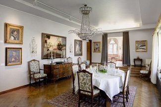 Kotimuseon puolella on esillä suomalaista kultakauden taidetta, sekä vanhempaa eurooppalaista taidetta. Salongin, pikkusalongin sekä ruokasalin sisustuksena on alkuperäisiä, pariskunnalle kuuluneita huonekaluja ja esineitä.