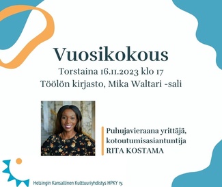 16.11.2023 Vuosikokous: puhujavieraana Rita Kostama